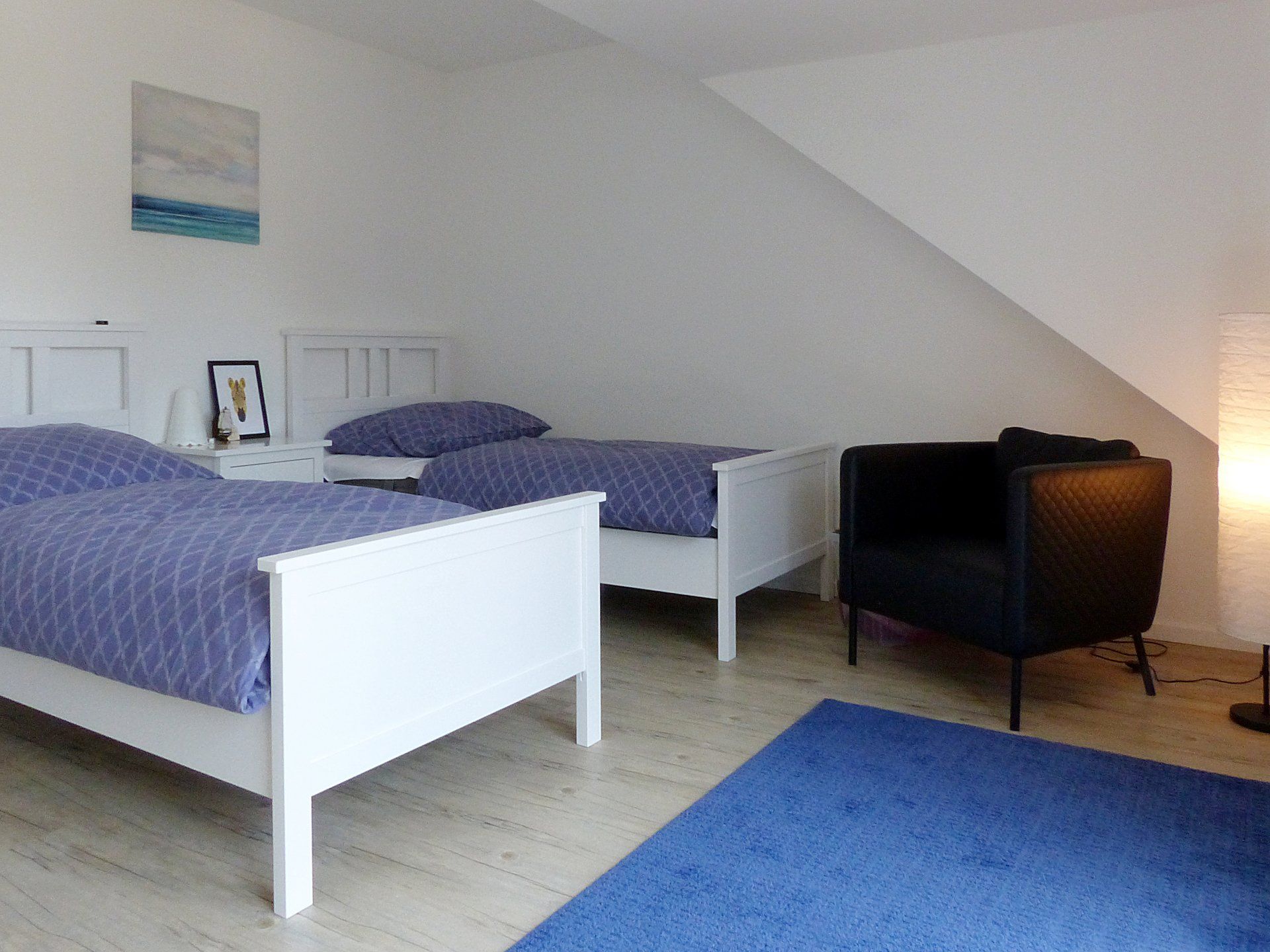 Bei der Planung wurde viel Wert auf eine optimale Nutzbarkeit gelegt. Ein Hauswirtschaftsraum mit Waschmaschine und Trockner durfte hierbei ebenso wenig fehlen wie die 2 geräumigen Schlafzimmer im Obergeschoss. Hier kann zu den zwei Einzelbetten auch noch ein Beistellbett gestellt werden.